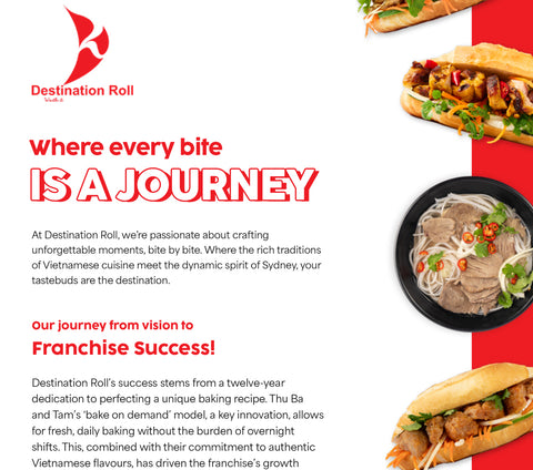 Are you an aspiring entrepreneur with a passion for great food and a desire to be your own boss? Look no further! Destination Roll offers an exciting franchise opportunity that brings the authentic flavours of Vietnam to the streets of Sydney. Let's explore what makes this opportunity so unique and enticing: At Destination Roll, we believe that age is just a number when it comes to pursuing your dreams. Our franchise opportunity is open to individuals aged 30 and above, who are eager to dive into the quick-service restaurant industry. No prior chef or food experience is required. We value your entrepreneurial spirit and believe that with the right training and support, anyone can flourish in the world of business.